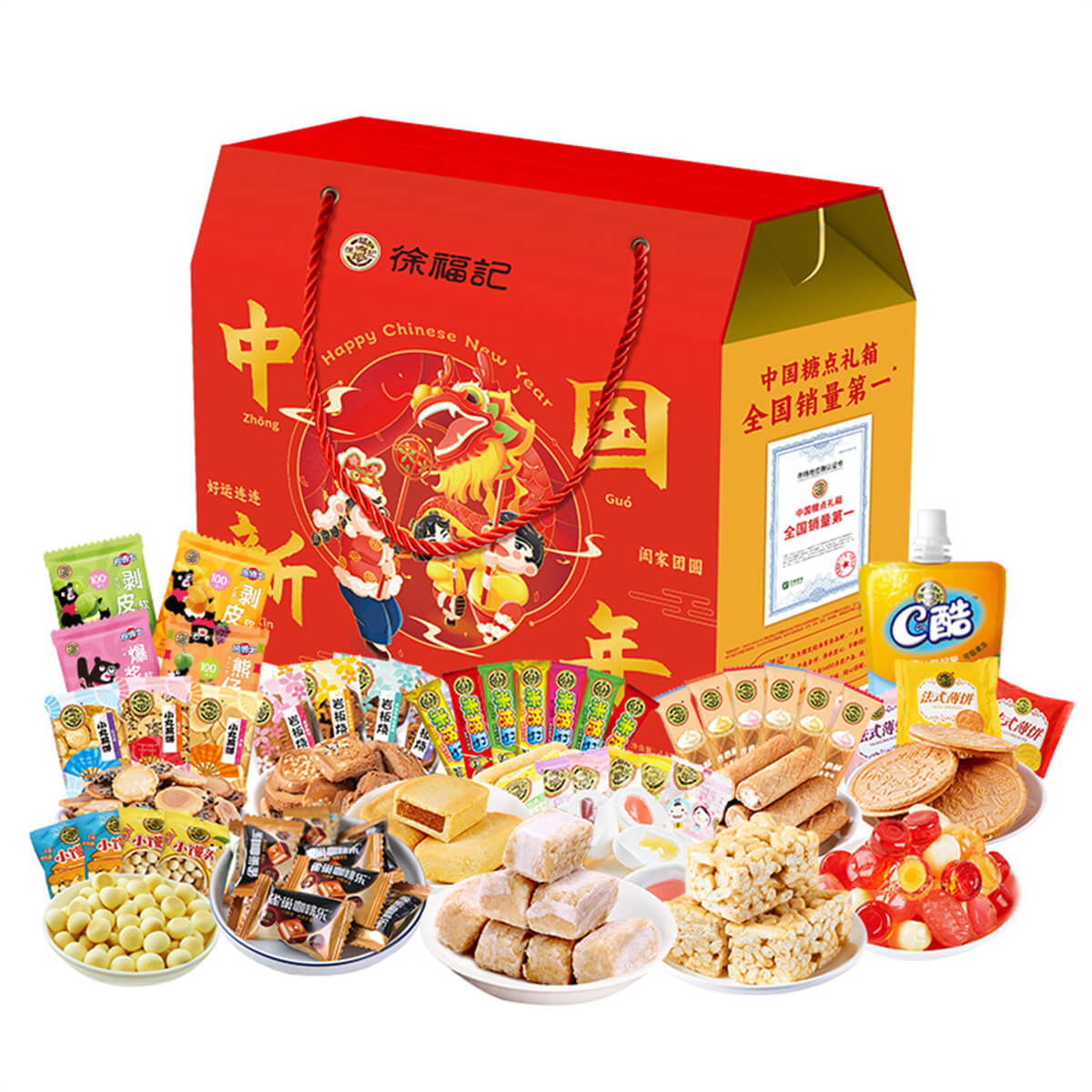 中國新年 發布時間:2025-01-04點擊:51 團購優惠請聯系我們 內容物:1:徐福記酥心糖150克2:徐福記沙琪瑪418克3:徐福記新年什錦糖120克4:100%果汁軟糖120克5:米格瑪110克6:徐福記鳳梨酥200克7:雀巢咖啡樂(罐裝)92g8:徐福記棉花糖192克9:CD酷果凍110g*1袋10:徐福記綜合餅點200克*2袋(小丸煎餅、巖板燒、京屋果子、卷心酥、法式薄餅等) 請填寫您的信息 提交留言