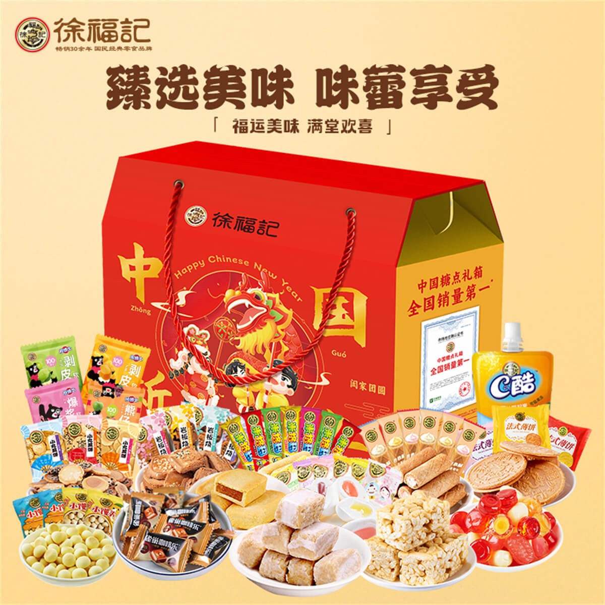 中國新年 發布時間:2025-01-04點擊:51 團購優惠請聯系我們 內容物:1:徐福記酥心糖150克2:徐福記沙琪瑪418克3:徐福記新年什錦糖120克4:100%果汁軟糖120克5:米格瑪110克6:徐福記鳳梨酥200克7:雀巢咖啡樂(罐裝)92g8:徐福記棉花糖192克9:CD酷果凍110g*1袋10:徐福記綜合餅點200克*2袋(小丸煎餅、巖板燒、京屋果子、卷心酥、法式薄餅等) 請填寫您的信息 提交留言 Tag標簽: 上一篇:團聚時刻 下一篇:福滿團圓