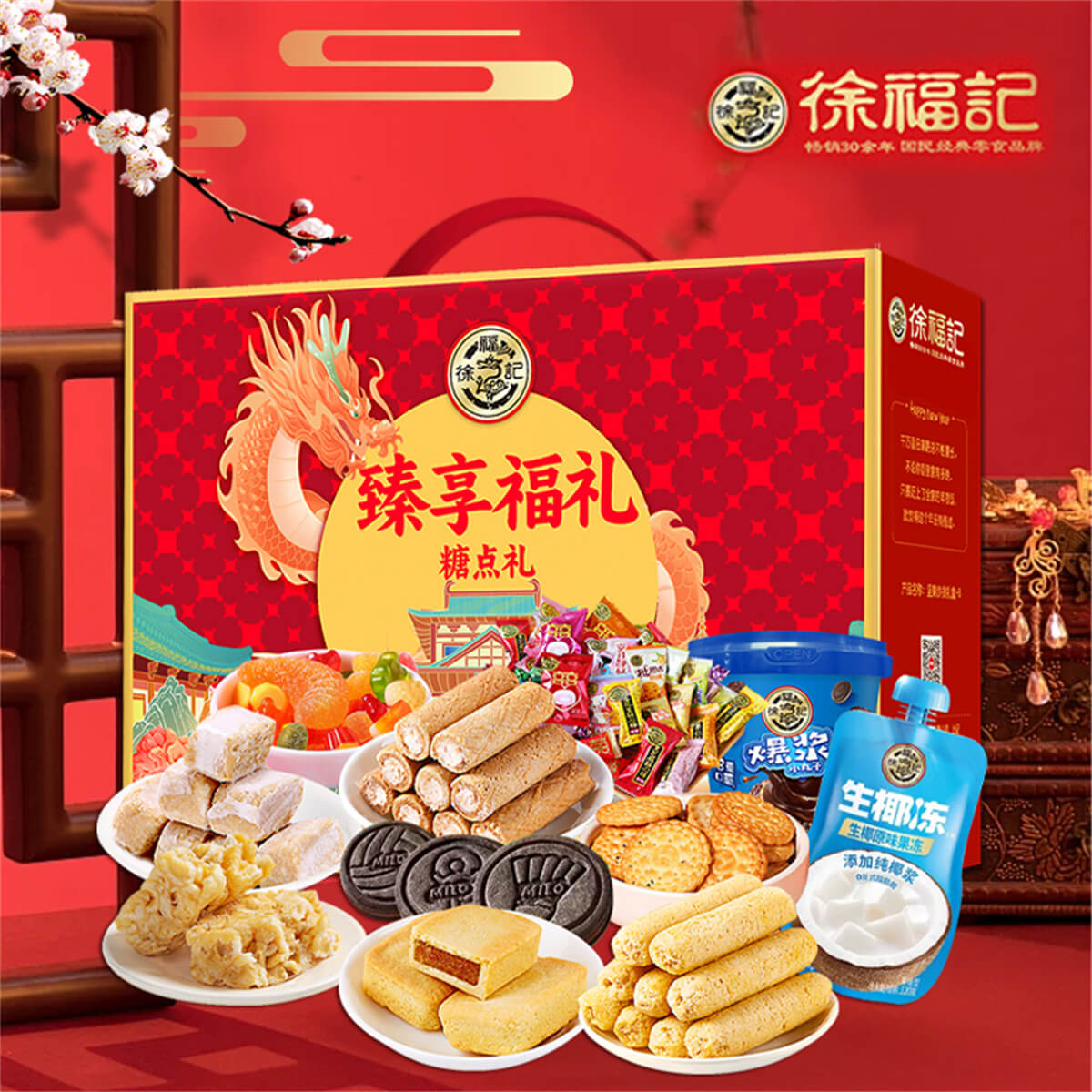 臻享福禮2034g 發布時間:2025-01-04點擊:136 團購優惠請聯系我們 內容物:【徐福記】沙琪瑪416g 【徐福記】生椰果凍120g【徐福記】卷心酥105g【徐福記】小圓餅32g【徐福記】鳳梨酥184g【徐福記】酥心糖306g【雀巢】美祿餅干108g 【徐福記】什錦糖果380g【徐福記】米格瑪178g 【徐福記】爆漿小丸子70g 【徐福記】橡皮糖135g 請填寫您的信息 提交留言